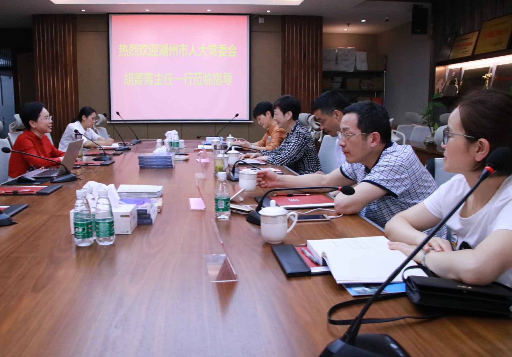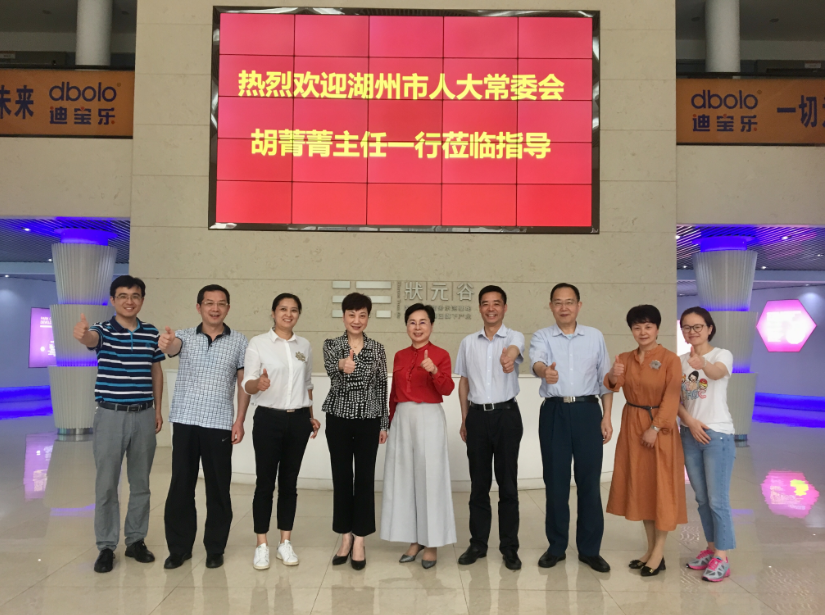 4月26日,湖州市人大常委会胡菁菁主任一行莅临开云官方站页面网站登录入口-开云(中国)总部考察指导,集团董事长、广东省湖州商会会长官金仙热情接待了胡主任一行。