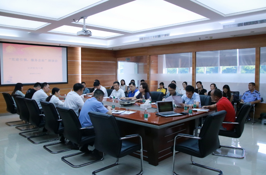 会上,谢雪东首先介绍了文冲街大党工委建设情况及状元谷园区党建情况,提出状元谷园区要以党建引领园区、促进企业发展。随后,街道领导们与园区企业代表进行沟通交流,了解企业业务、党建工作及生产经营情况,听取对改善营商环境的意见和建议,并就企业提出的问题及需要解决的事项进行了详细的解答。